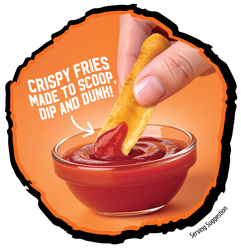 Cripsy fries made to scoop, dip and dunk! Our Scoop Fries are perfectly golden and expertly shaped to hold every drop of your favourite sauce. made for maximum dipping and maximum flavour, Every bite delivers the perfect balance of crunch and comfort.